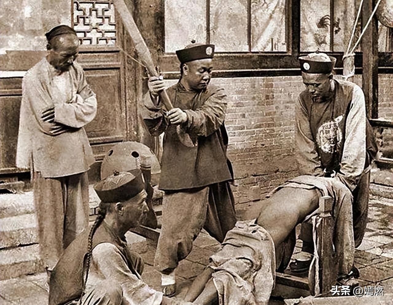 08 衙门口,衙差正在执行杖刑,这类刑罚一般针对犯了小错误的人。