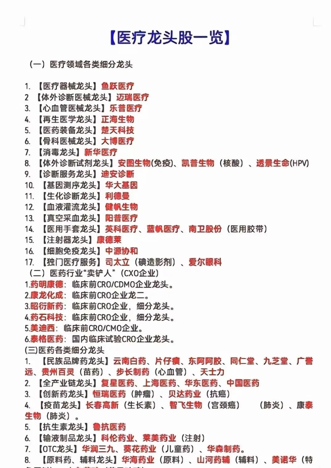 中国股市里,A股医药行业有10只优质龙头股,可是长线投资的好选择,建议大家收藏哦。龙头股对同行业影响大。它得有好题材,像国家政策支持之类的,像维维股份重组贵州醇就成了龙头。还要经过打压洗盘,涨停启动才强势。主力高度控盘,从涨停板开始,多是低价股,流通市值适中,日线、周线、月线KDJ要同时低价金叉,还常在大盘下跌末端逆市涨停。医药板块是出牛股的地方。中国人生活水平提高,在医药上花费增多,医药暴利有投资空间。恒瑞医药是国内创新药第一股;爱尔眼科是眼科连锁医院第一股;迈瑞医疗是医疗器械第一股等。这些龙头股业绩增长快,各有优势。从之前看,医药股是大资金主攻方向,相关概念股蓄势待发,我还选出一只可能成大妖的龙头,8家机构给予“买入”或“增持”呢。