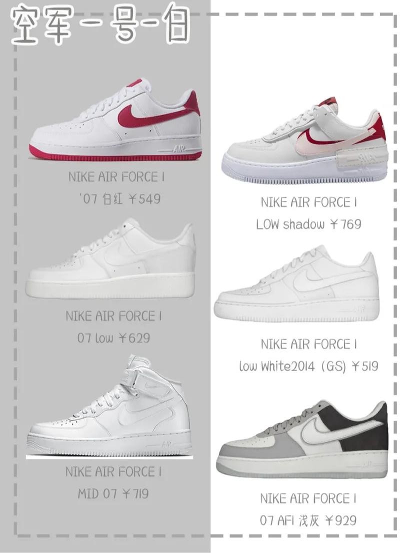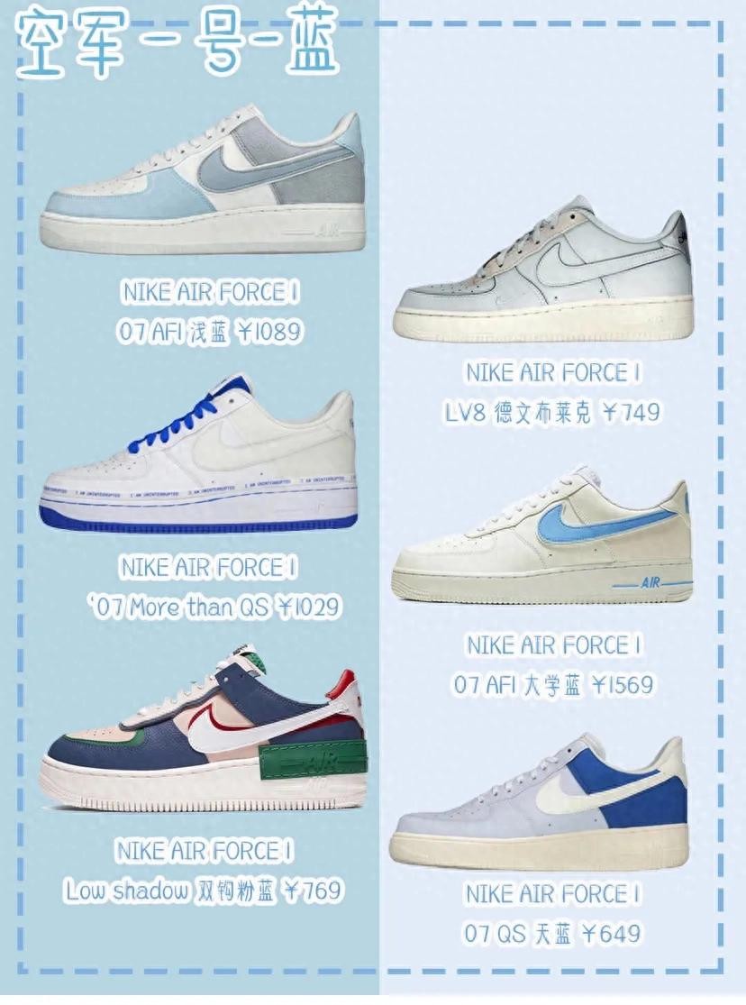 超全Nike空军一号合集,今天给大家推荐一波我超级喜欢的空军一号我觉的空军一号的款式都非常百搭而且有点增高而且颜色款式也超级多男女生都应该必备一双个人是非常喜欢粉色的和蓝色的呢!