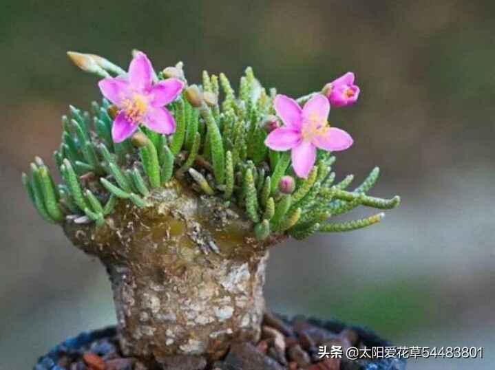 韧锦是块根多肉,外形不象景天科多肉那么美,但是它的花较漂亮,目前在我们大中国养殖的不多,可能是外形不够吸收人、花期也短的原因吧。不过,我倒是喜欢它梅花似的花朵比较养眼,毕竟是物以稀为贵,喜欢的人还是大有人在,萝卜青菜各有所爱。韧锦生长的很缓慢,株型较小,由于外形别致当工艺盆栽养殖较好,放到有阳光的书桌、窗台等位置,等到开花的时候可以彰显它神奇的魅力。