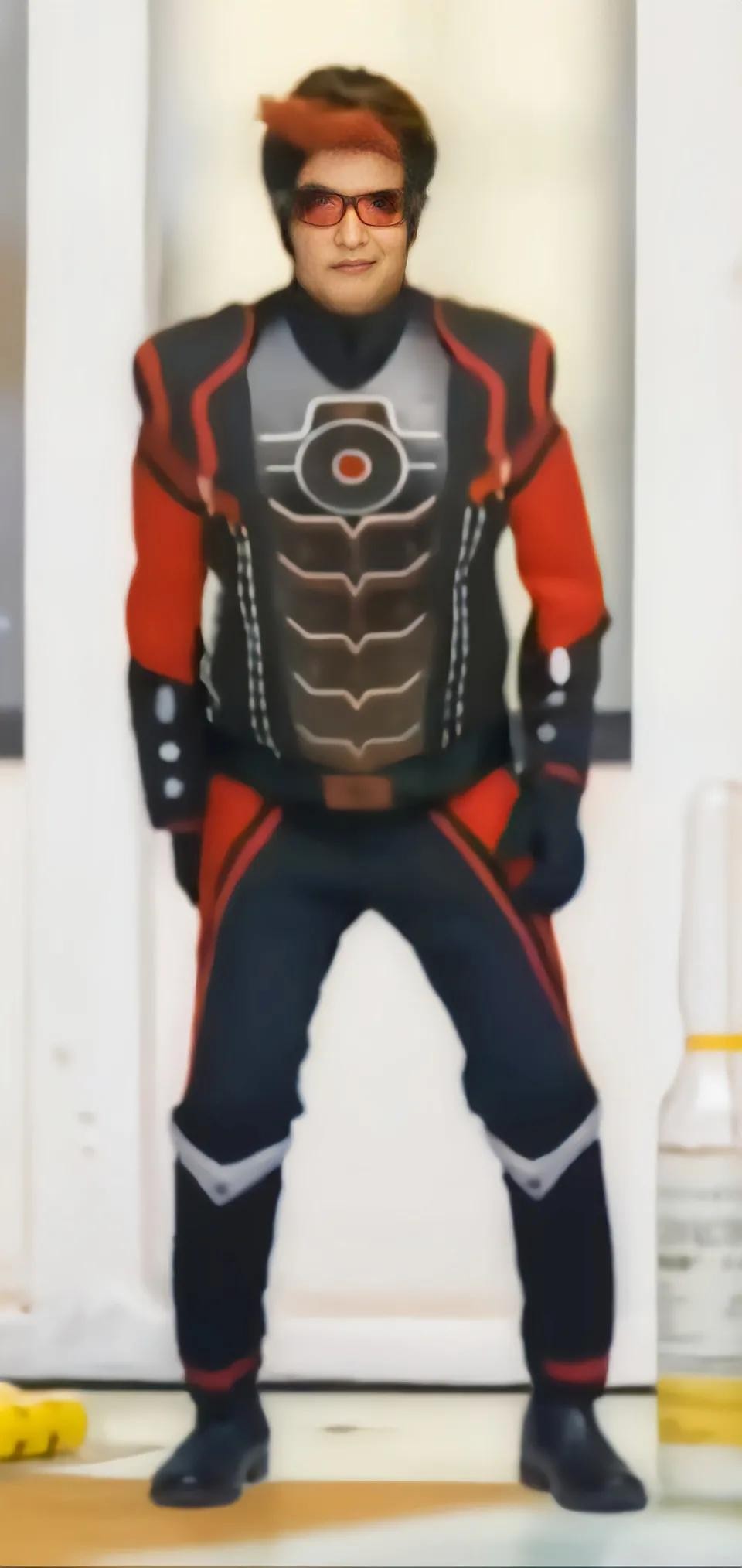 个人造型:戴大墨镜,皮衣,皮裤,长相和瓦西差不多几乎一模一样(更加年轻,没有大胡子和胡须),特制战甲, 超级机器人七弟最强形态:版本2.0魔鬼终结者,百人的智商和才华与能力,百人的破坏力。