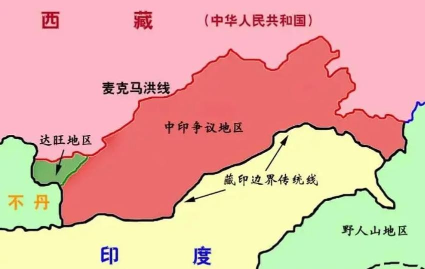 1951年印度方面在东段向 “麦克马洪线”以南的中国境内推进,遭到当地居民的抵抗。印度政府于1954年在其侵占的“麦线”以南、传统习惯线以北9万平方公里的中国领土上,建立起它的“东北边境特区”,并修正官方地图,企图使其侵占的中国领土固定化、合法化。