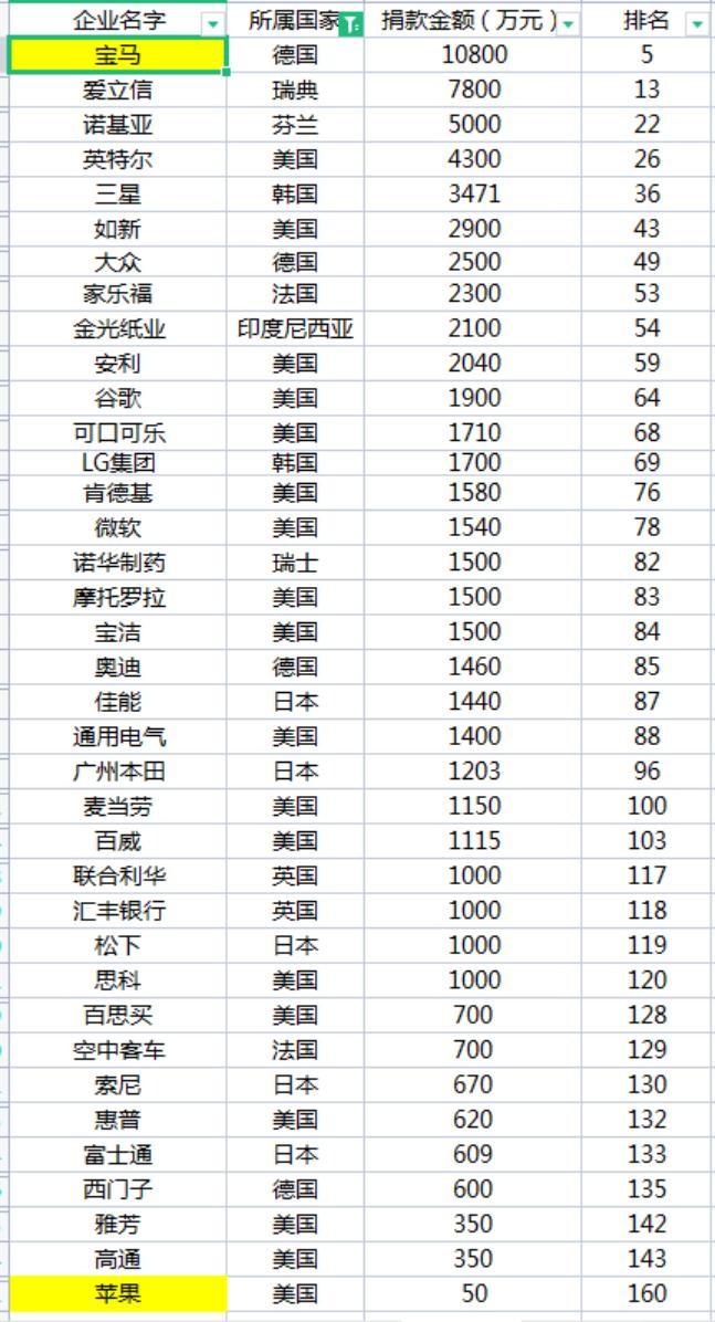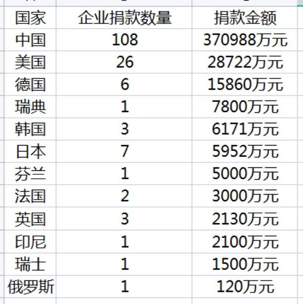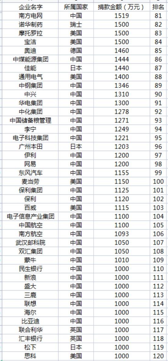 外国企业捐款排名