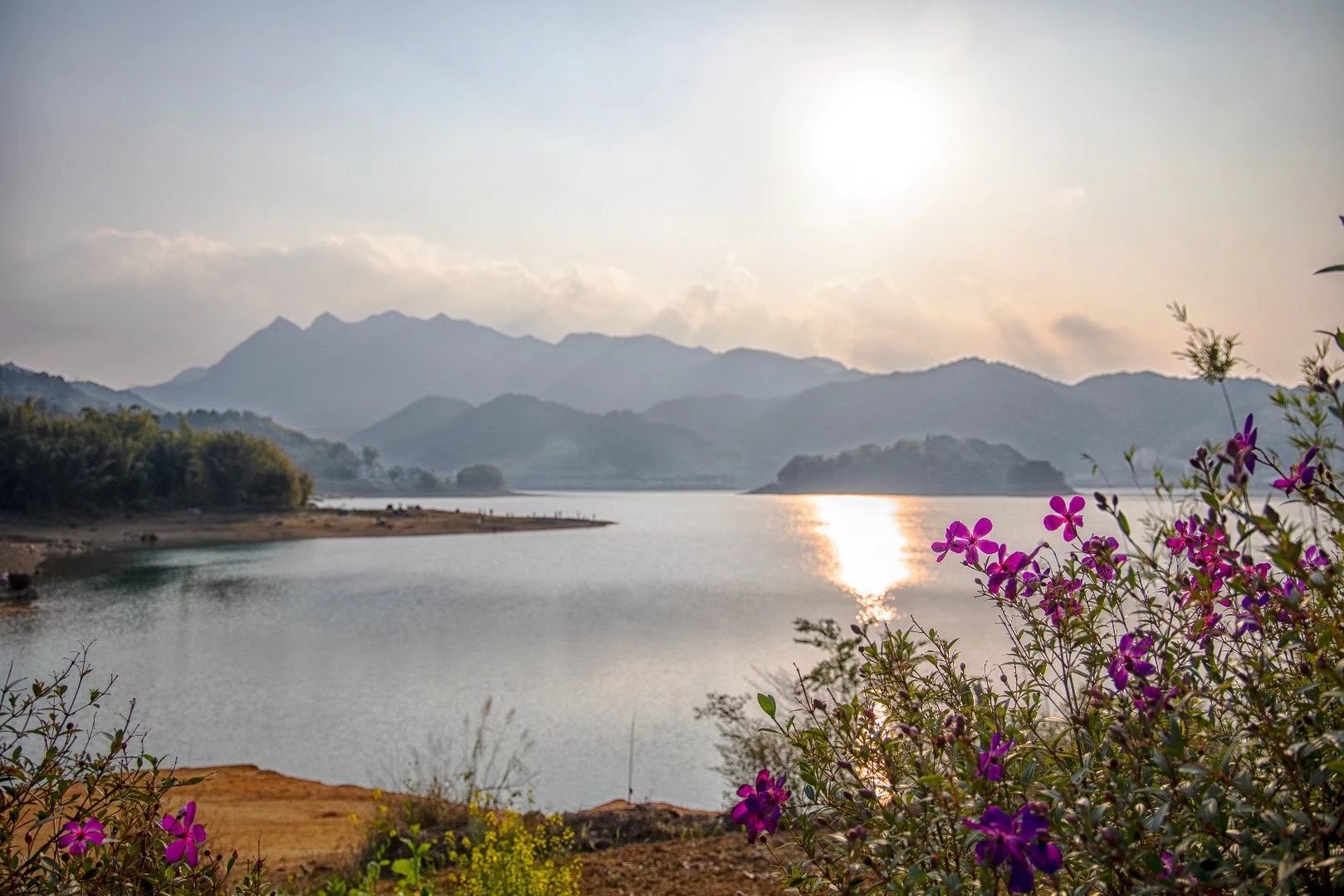 站在水库边远远望去,一片碧绿的湖水被连绵不绝的青山所簇拥着,吹着山风可尽情享受大自然的春意~~
