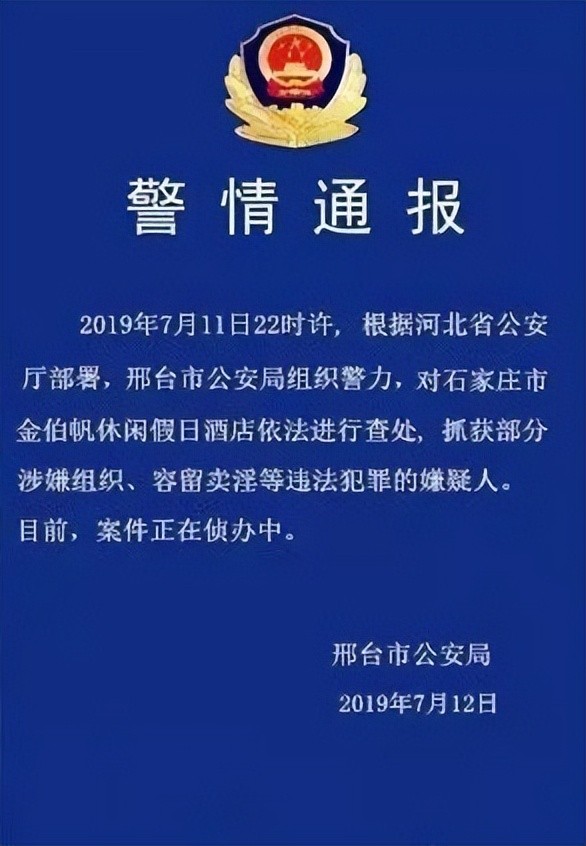 直至2019年7月11日,警方终于查封了金伯帆休闲假日酒店,并当场抓获了部分涉嫌不正当项目的嫌疑人。