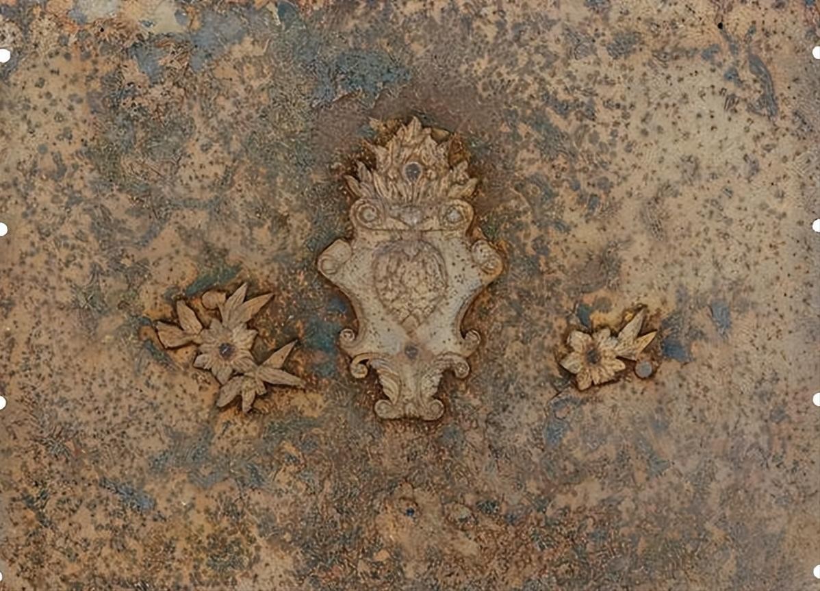 此钢板位于中央铁亭的二层外壁,共八块,围合成封闭空间,空间内有水箱。钢板表面有铸铁装饰,采用铆钉固定,是典型的西方装饰风格。