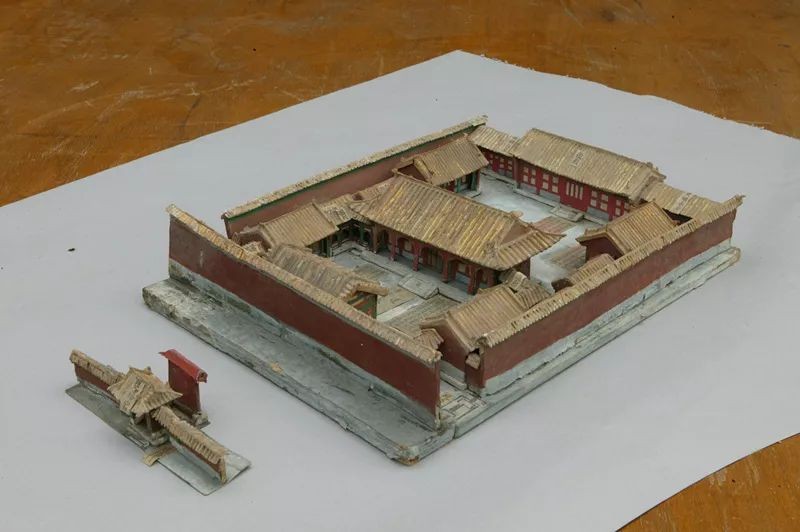 从延禧宫烫样上,能够看出它当年的大致样貌。其建筑格局与东六宫其他五宫格局相同,宫门影壁,前后两进院,前院正殿五间,黄琉璃瓦歇山顶。殿前有东西配殿各三间。后院正殿五间,亦有东西配殿各三间,均为黄琉璃瓦硬山顶。