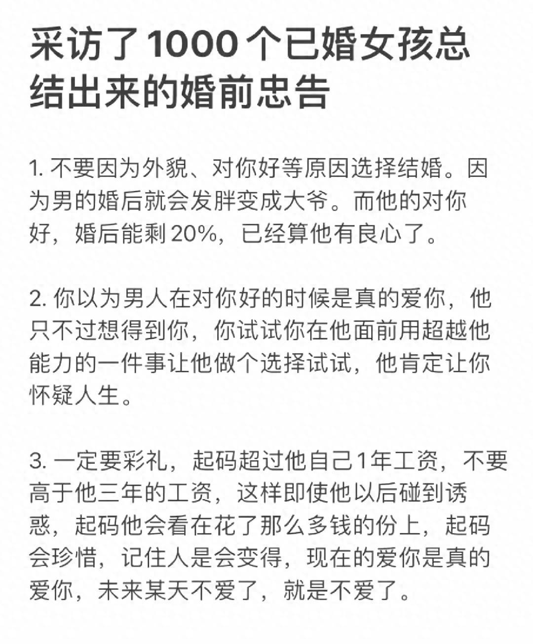 采访了1000个已婚女孩总结出来的婚前忠告