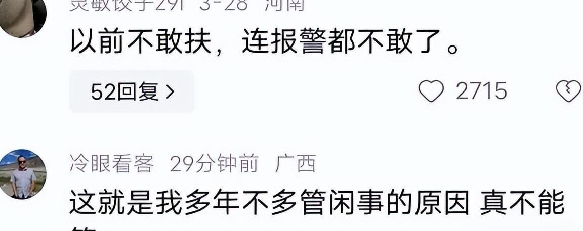 这个问题也引发了网友的思考:如果在外面看到跌倒或者车祸,是否愿意报警。 我们相信,人人都有善意,但善意有时会被利用而辜负。 让人感到寒冷后,就会产生一种与外界无关的心态。 这不是冷漠和自私。 这也是一种保护自己的行为。