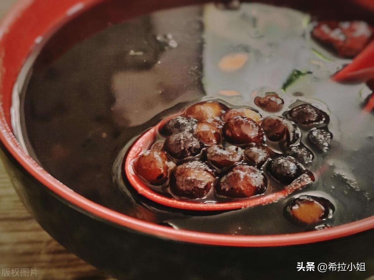 由黑豌豆加入苹果、三奈、桂皮等调料,先在铁锅中熬至半熟,再加水,放入红枣等调料,小火慢煮成糊状,吃的时候再加入白糖,口感很棒。兰州灰豆以杜维成灰豆最为有名,有“金城灰豆王”之称。