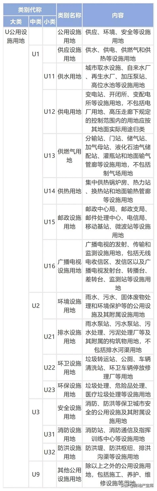 根据GB 50137-2011《城市用地分类与规划建设用地标准》中的城市建设用地分类将公用设施用地定义为“供应、环境、安全等设施用地”。