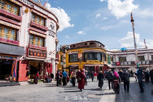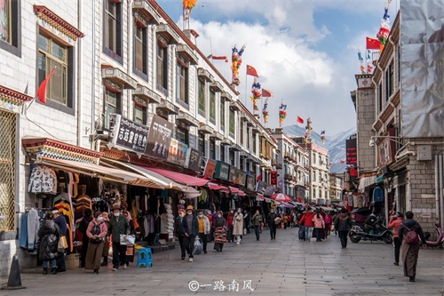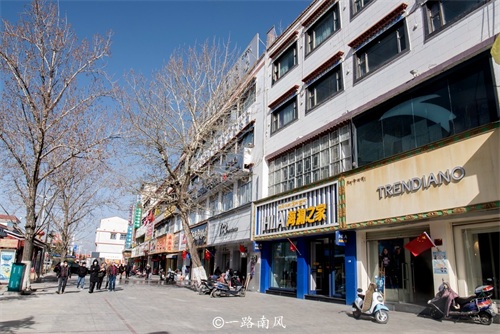 这里的主要道路都非常宽敞,一些转经步道已经发展成旅游商圈,商业气氛浓郁,但恰到好处。
