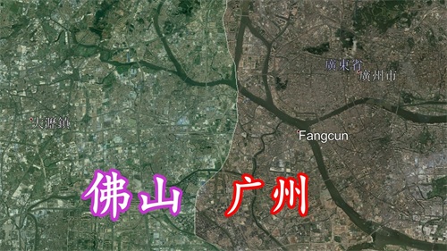 卫星地图上的广州和佛山,我国距离最近的两个大城市,到底有多近