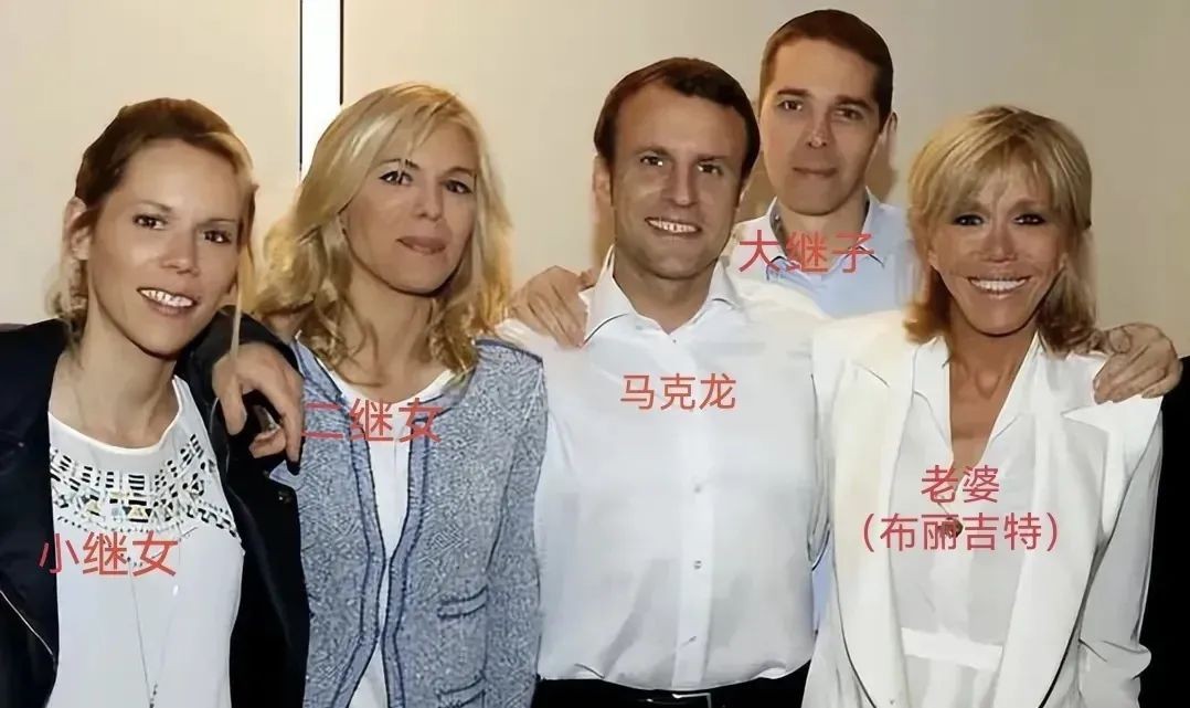 46岁马克龙的全家福!与70岁布丽吉特成为夫妻,白捡3个继子继女