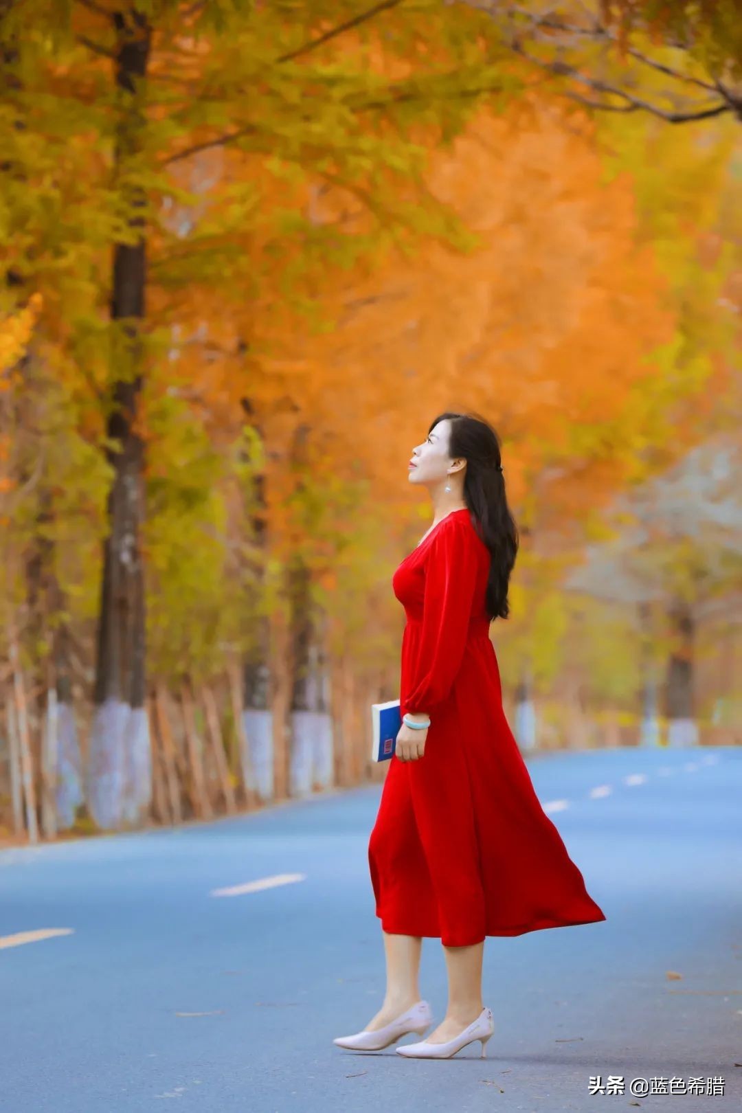 在好看的场景中,抬头看风景的画面也特别美,比如站在美丽的秋色中,一袭红裙出镜,模特抬头看风景的画面,是一幅赏心悦目的画面。