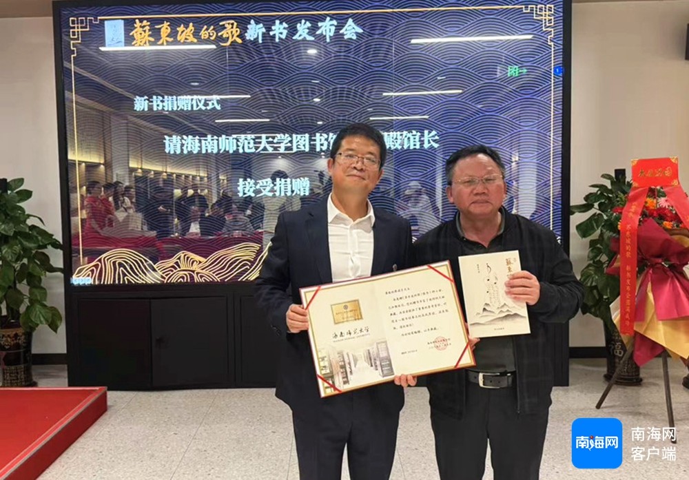 此外,现场还进行赠书仪式,作者将《苏东坡的歌》捐赠给海南师范大学、海南职业技术学院、海南工商职业学院图书馆,海南省图书馆、海口市图书馆等5家单位。