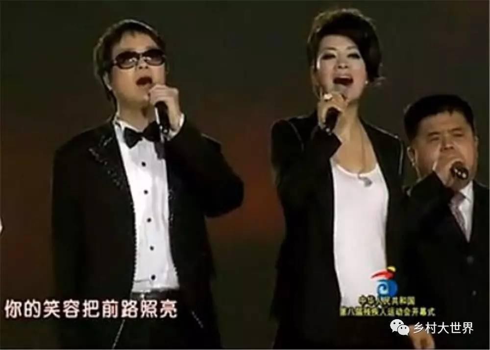 盲人歌手史江月在残奥会开幕式舞台上和毛阿敏共同演唱