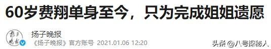扬子晚报——60岁费翔单身至今,只为完成姐姐遗愿