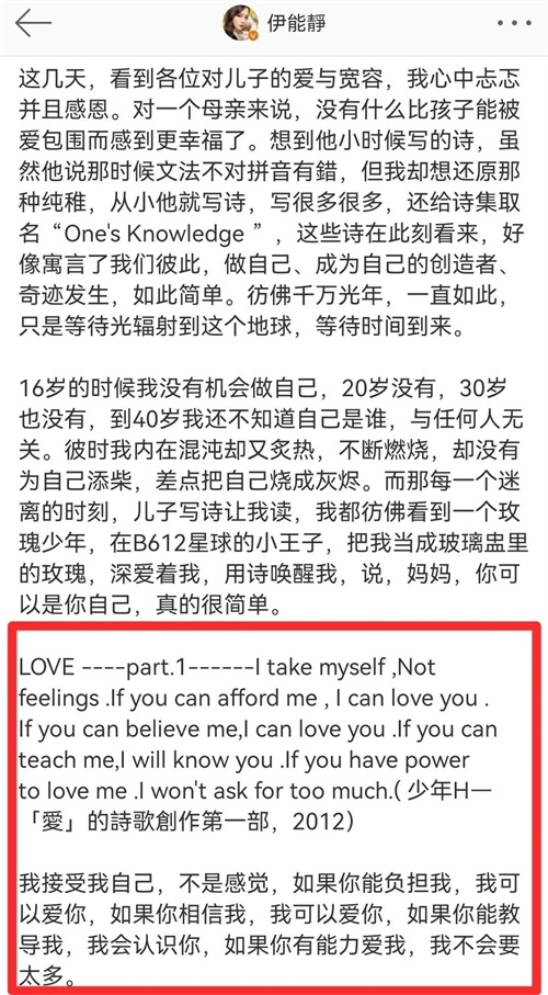 伊能静在文字中表达了对儿子的深深爱意。她对哈利的关心和支持从未间断,用心感受着儿子内心的每一丝波动。这种母子之间默契的交流,使得他们之间的情感更加紧密。在每个成长的节点,伊能静都在用文字记录下这段珍贵的时光,让人感受到一种深情的温暖。