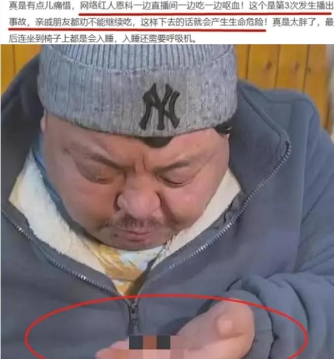 他全然不顾自身的健康状况,只是一味地暴饮暴食,以此来维系自己的直播事业和经济收入。