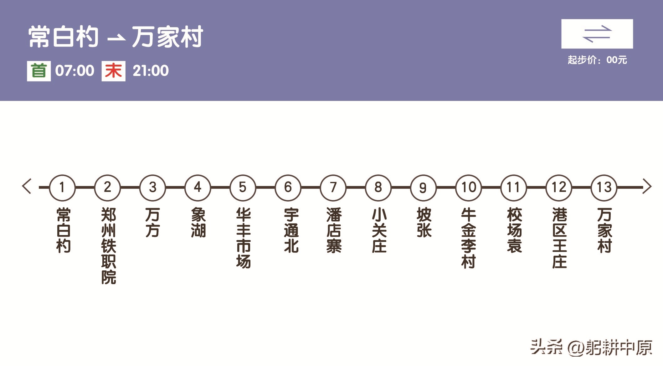 郑州地铁20号线,起始于常白站,主线终点至清明上河园站,支线终点站至郭公庄站。功能定位为郑州市郊加固线,设计时速暂定为100-120公里/小时,标识色待定。