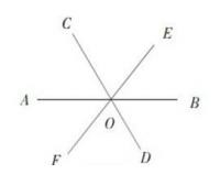例:如图,三条直线交于一点,任意找出图中的四对对顶角.
