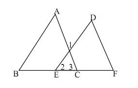 (2)由∠1=∠D可判定AC∥DF,根据是内错角相等,两直线平行;