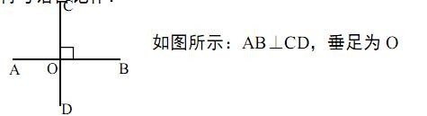 1.定义:当两条直线相交所成的四个角中,有一个角是直角时,就说这两条直线互相垂直,其中的一条直线叫做另一条直线的垂线,它们的交点叫做垂足.