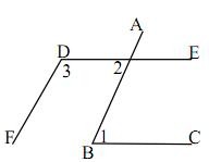 ∵AB∥DF∴∠3+∠2=180°(两直线平行,同旁内角互补)