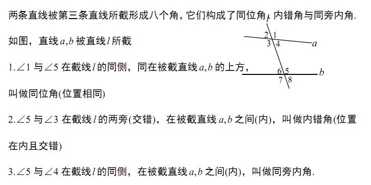 4.平行公理的推论:如果两条直线都与第三条直线平行,那么这两条直线也互相平行.
