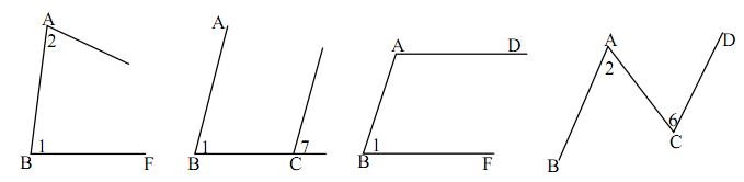 (1)∠1 与∠2;(2)∠1 与∠7;(3)∠1 与∠BAD;(4)∠2 与∠6;(5)∠5 与∠8.