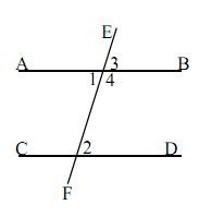 错解分析:由∠1+∠2=180°,不能得到EF∥AB.虽然∠1和∠2是由直线EF和AB被直线DC所截得的角,但由于它们不是同旁内角,∴尽管∠1+∠2=180°, 也不能得到EF∥AB.