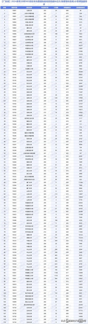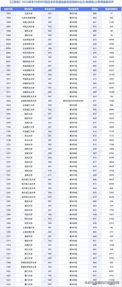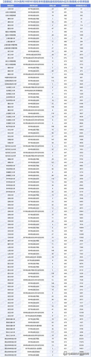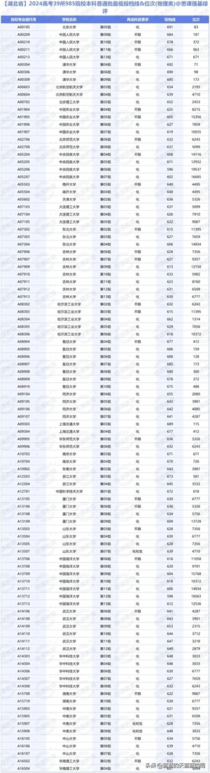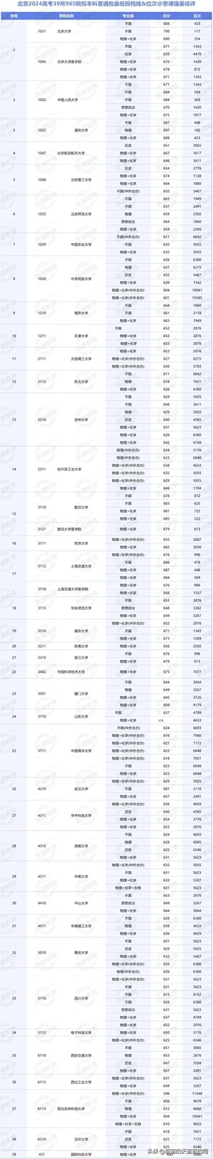 985大学2024在各省市录用分数线及位次,来了!25志愿填报参考