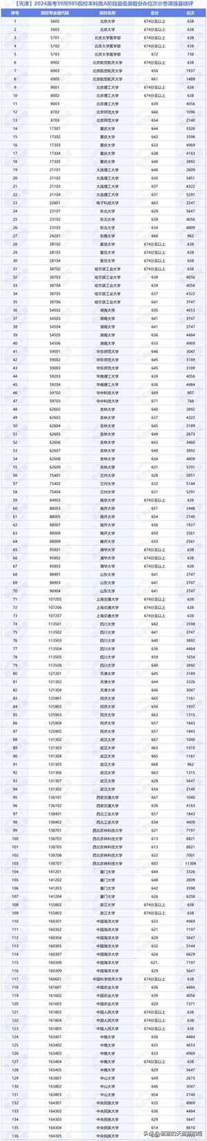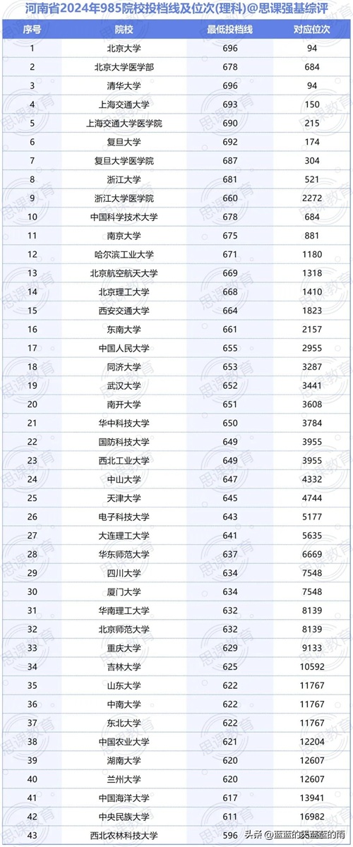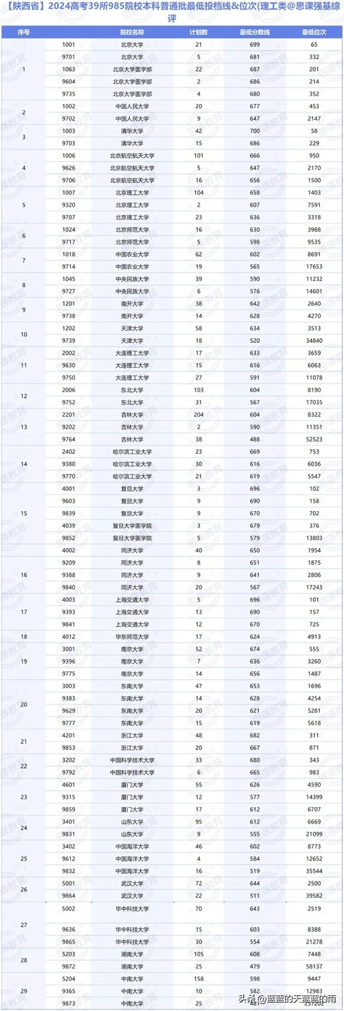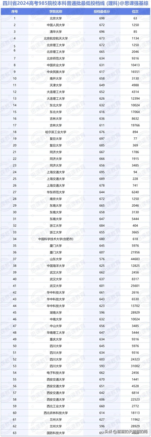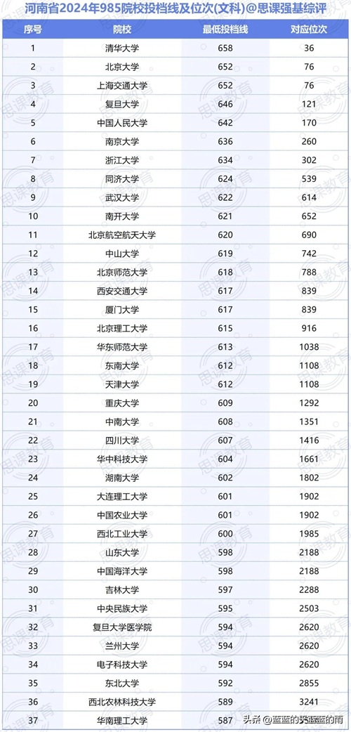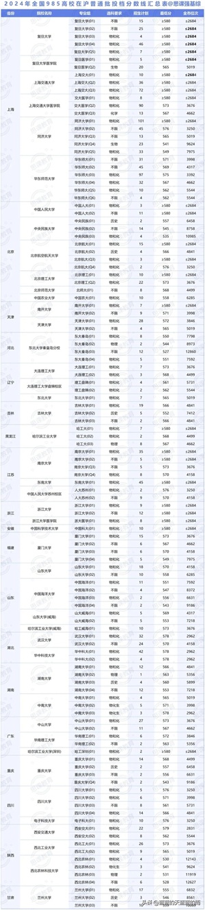 全国985大学2024年在各省市的最低录取分数线及位次如下,你现在的分数能上哪所大学?快来看看吧~