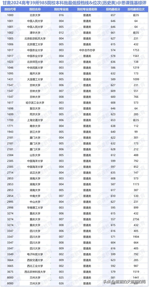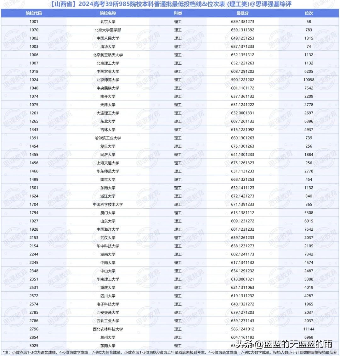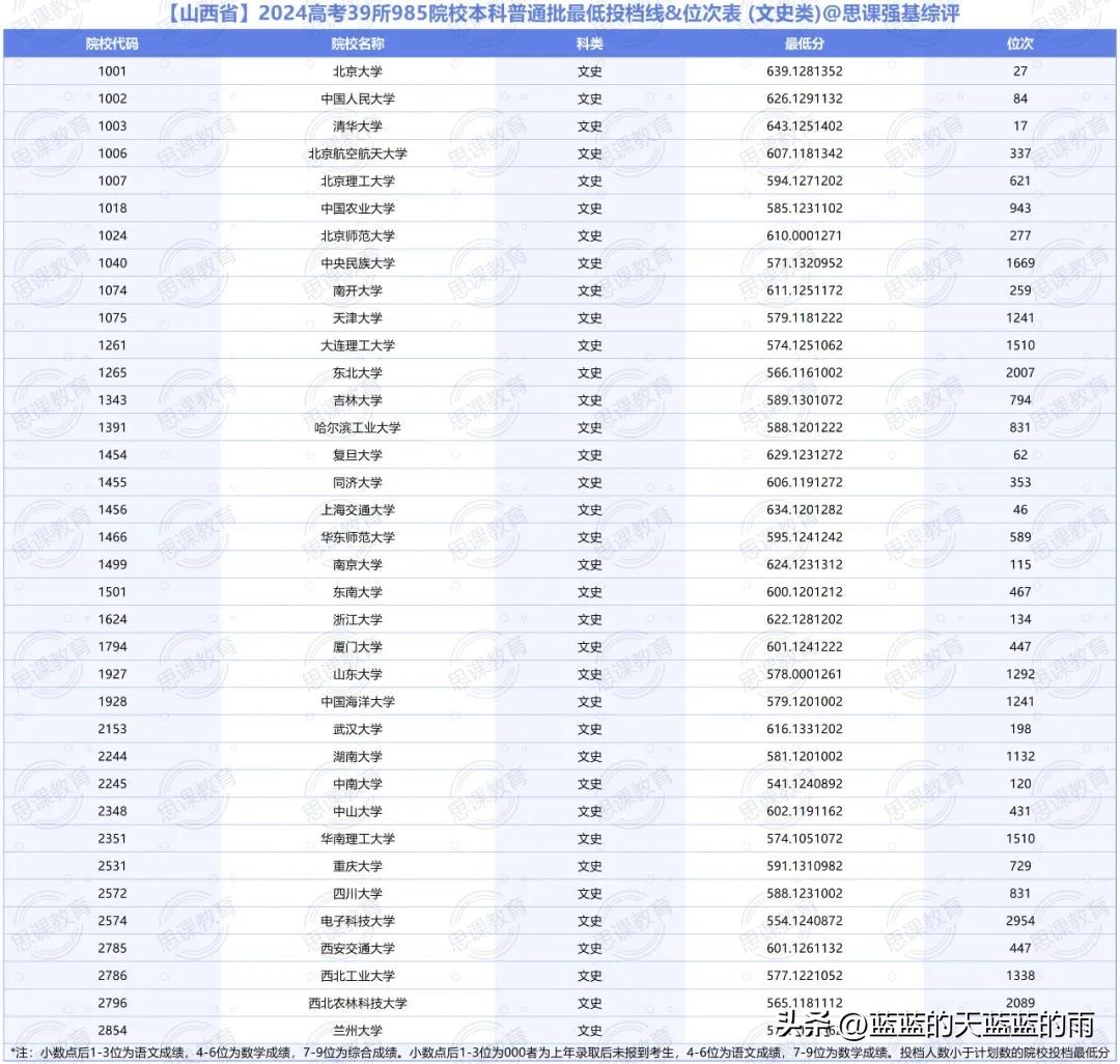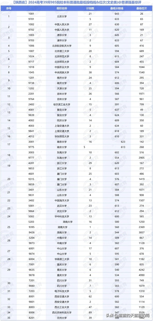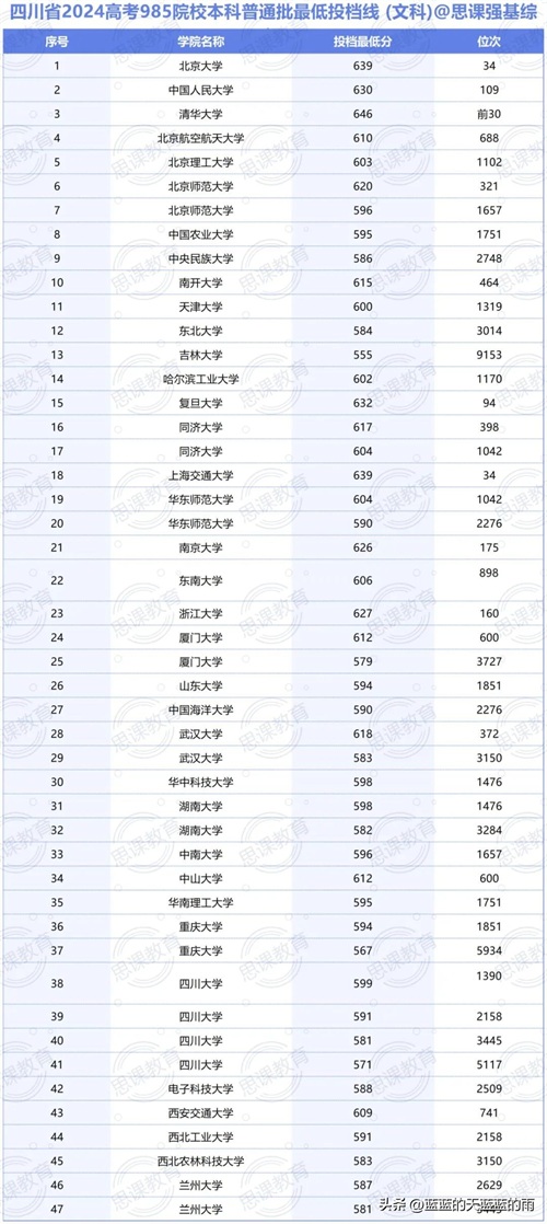 全国985大学2024年在各省市的最低录取分数线及位次如下,你现在的分数能上哪所大学?快来看看吧~