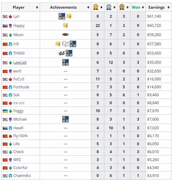 魔兽争霸历史总奖金榜