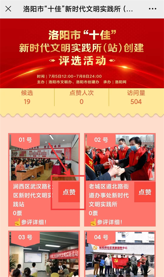 由洛阳市文明办、洛阳市创建办主办的洛阳市“十佳”新时代文明实践所(站)创建评选活动开始啦!快来为你支持的新时代文明实践所(站)打call吧~