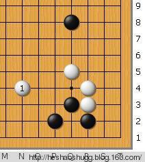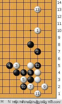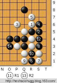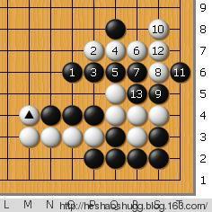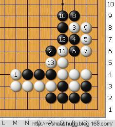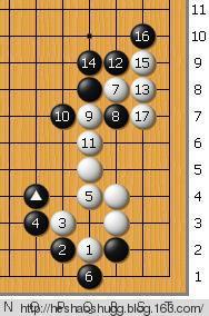 图1-17,白1、3先便宜一下以后再在白5夹,到13的变化。