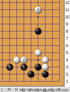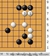 图1-2,白4托角是第一种应法,应该说是不太好的下法。