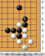 图1-24,基本图1白7的逼不成立的时候,只好在本图白1、3生根,比较委屈。但也有实战的例子。