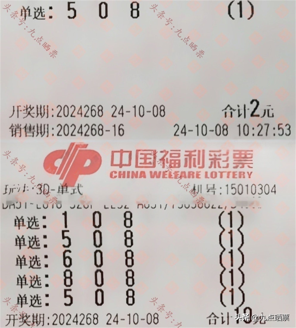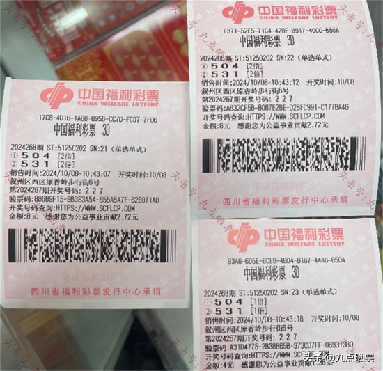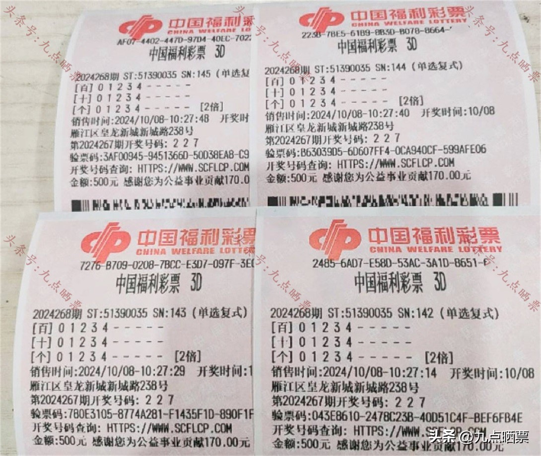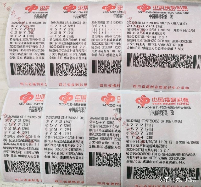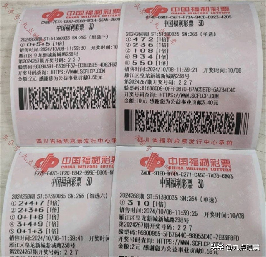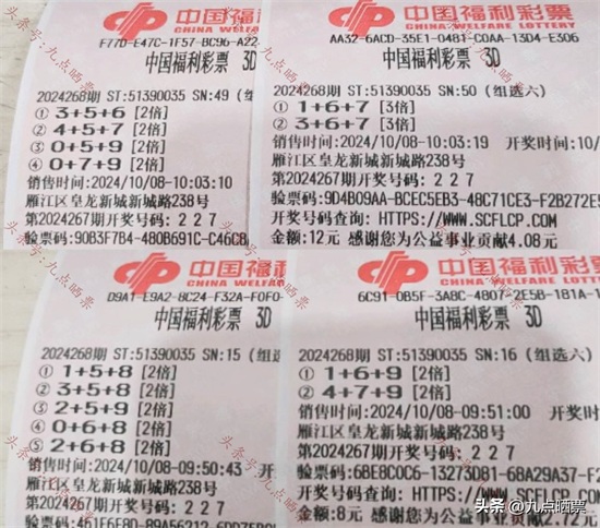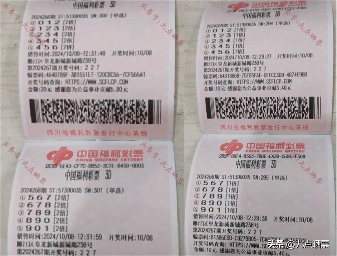 福彩3D第24268期晒票,多组大票集体亮相,仅供欣赏