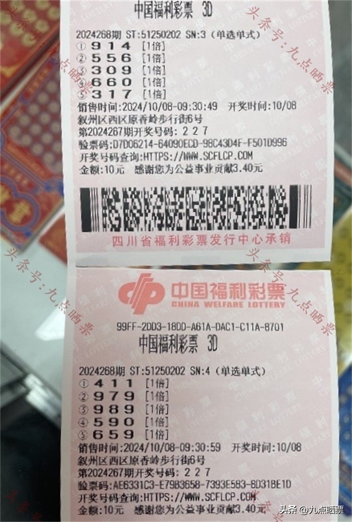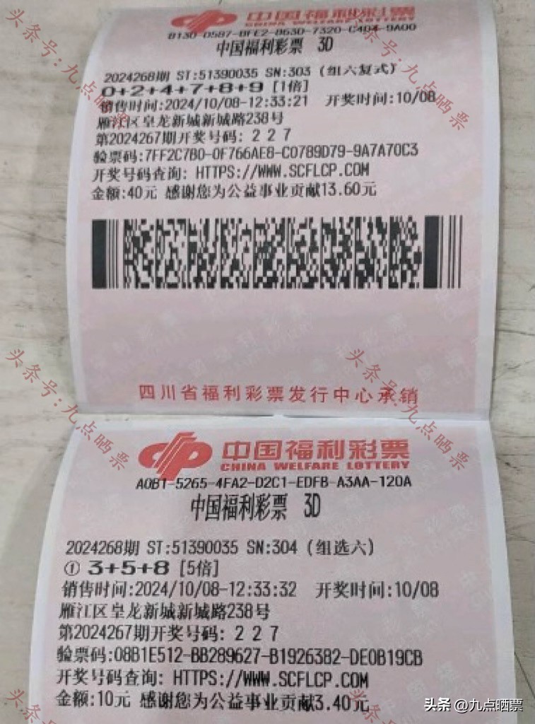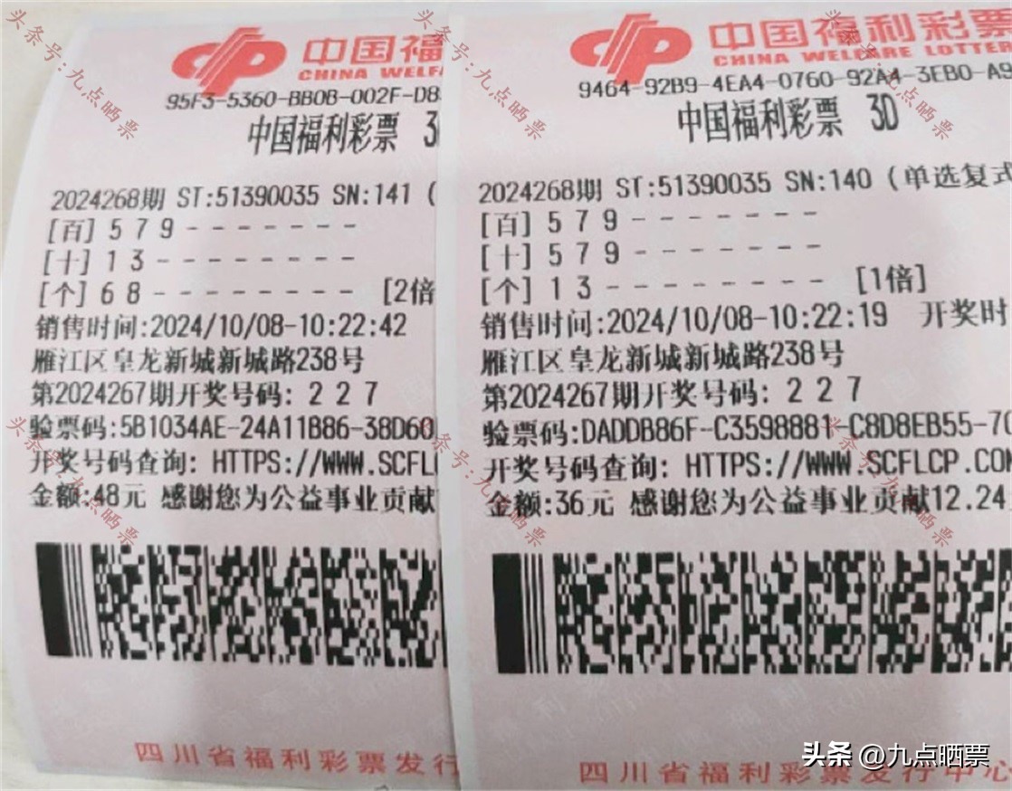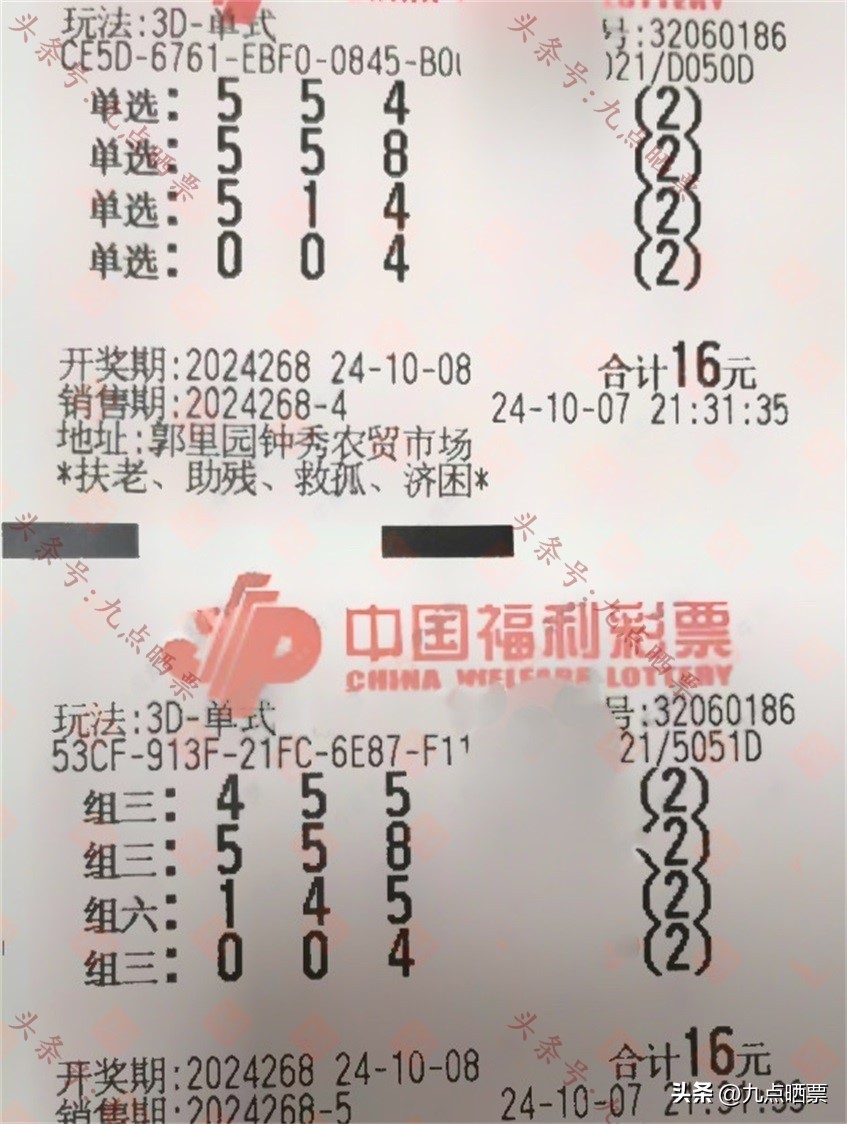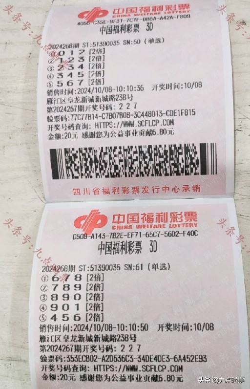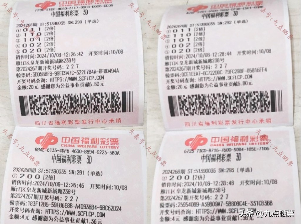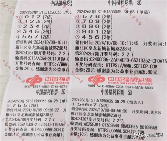 福彩3D第24268期晒票,多组大票集体亮相,仅供欣赏
