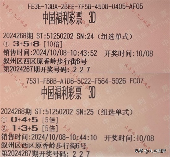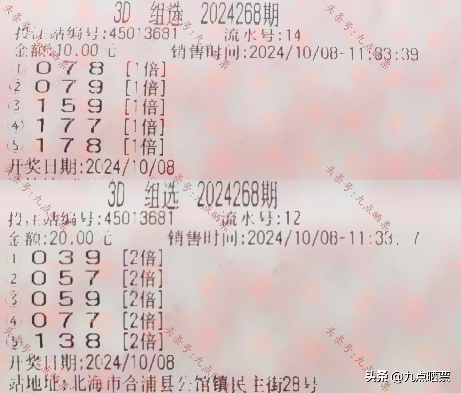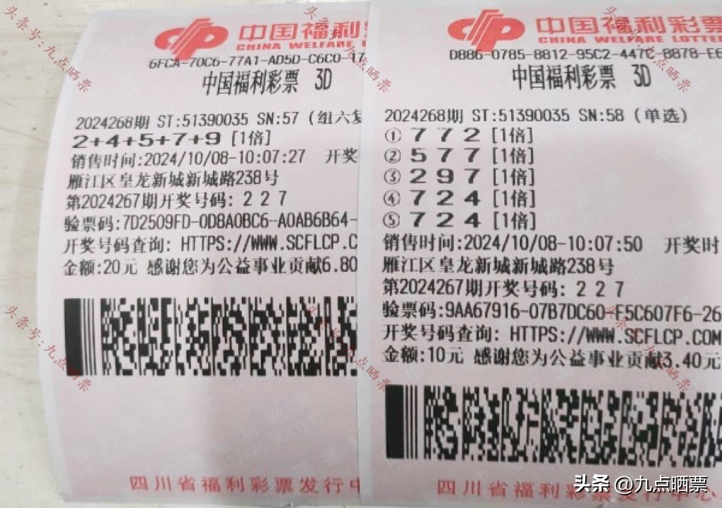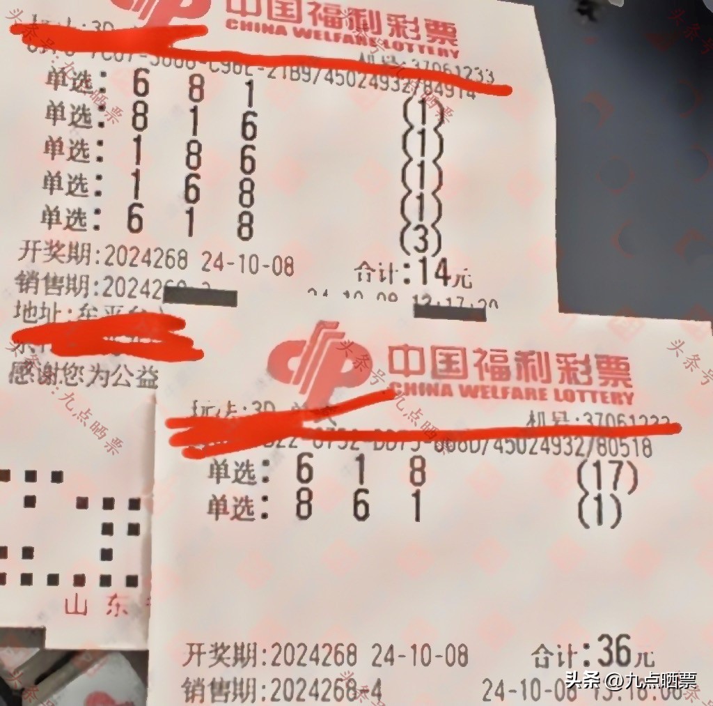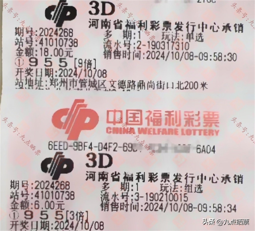 福彩3D第24268期晒票,多组大票集体亮相,仅供欣赏