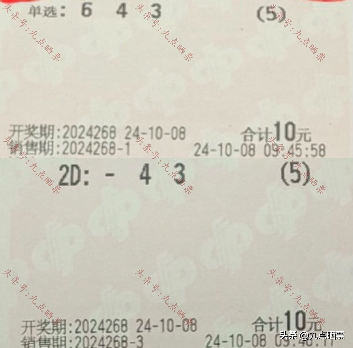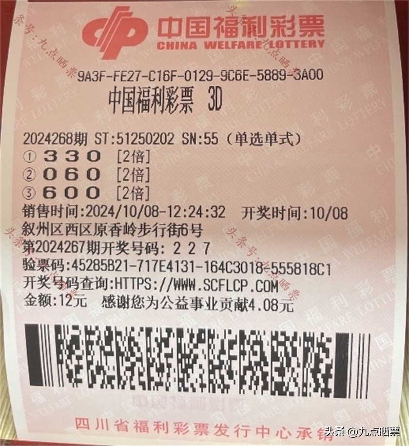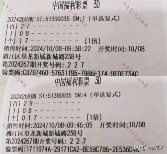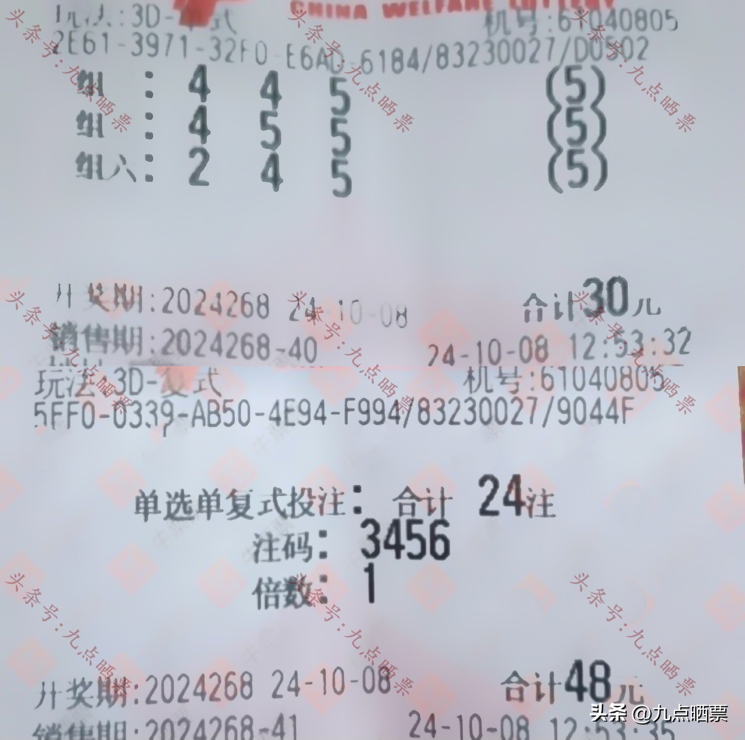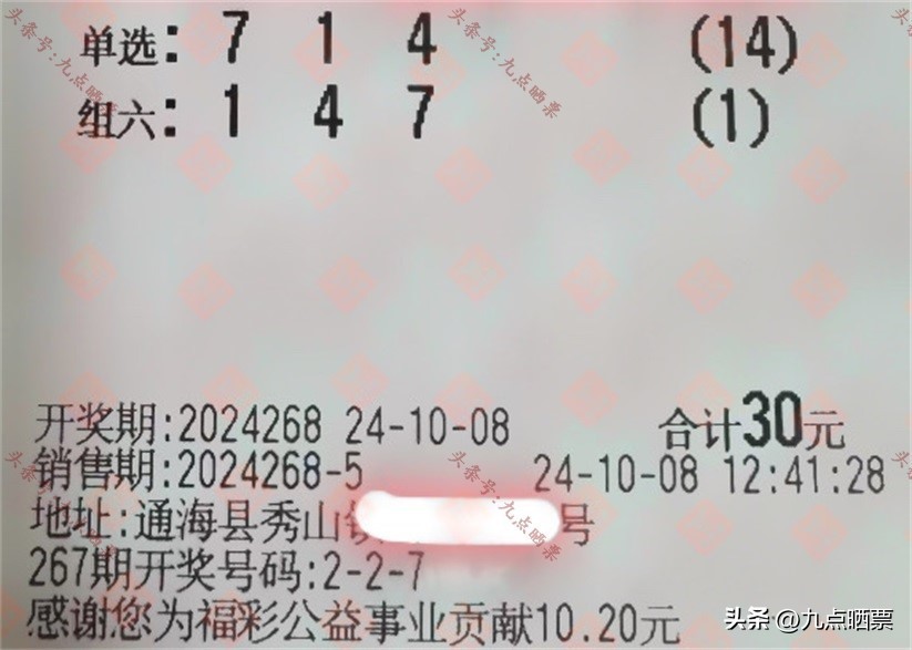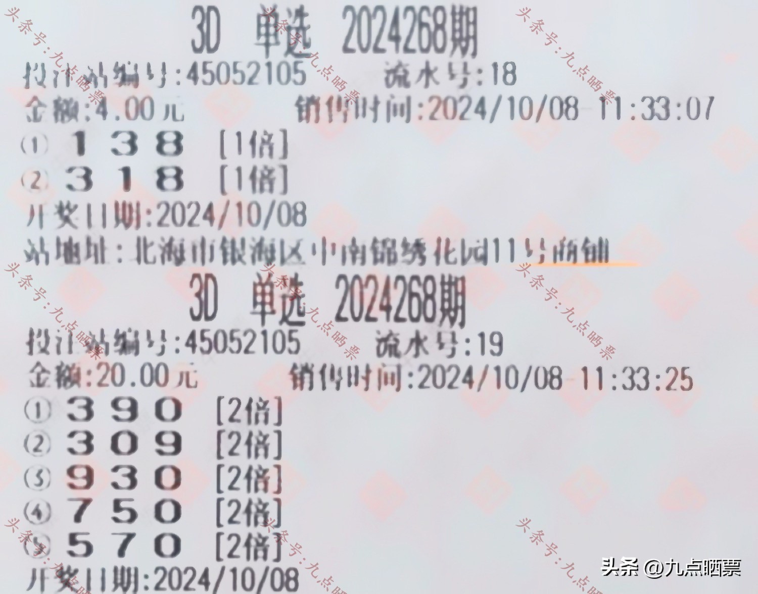 福彩3D第24268期晒票,多组大票集体亮相,仅供欣赏