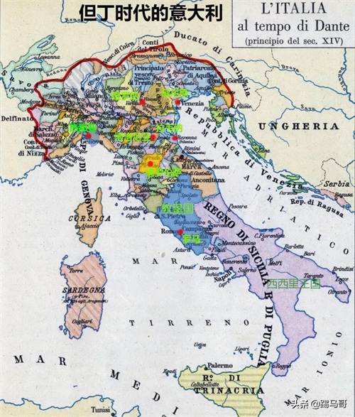 当时意大利北边是受德国控制的城邦,中部是罗马为核心的强大的教皇国南部是西西里王国教皇国为了稳固,拉拢西西里王国,北部城邦在强权夹击下左右逢源又彼此征战。