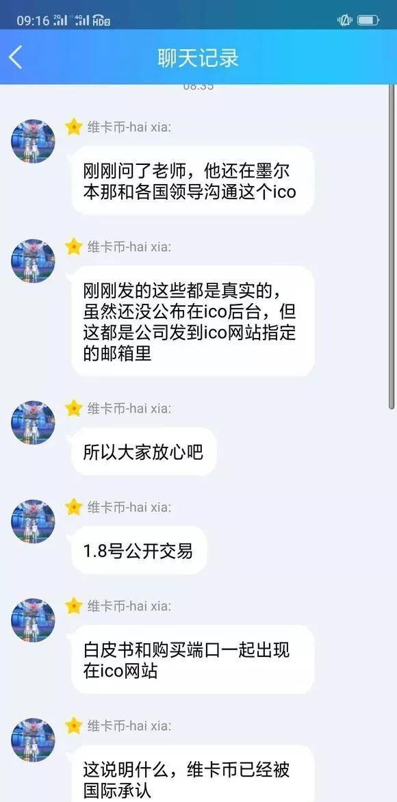 维卡币消息当时说在2018年10月8号公开交易,