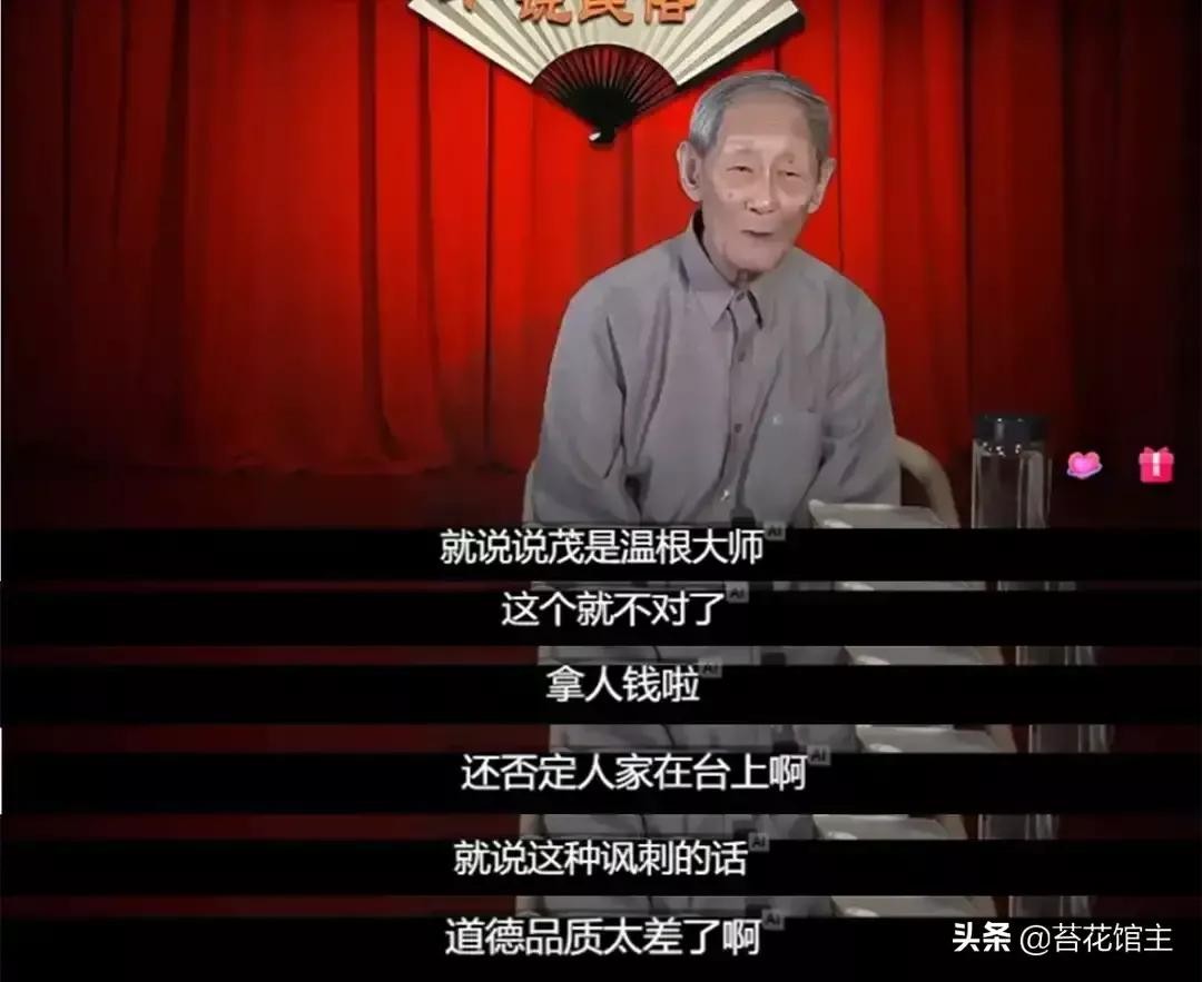 然后第二次直播,老先生就有点不地道了,开始质疑苏文茂先生这个文哏大师的称号了。