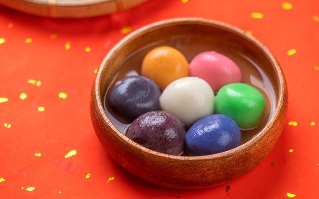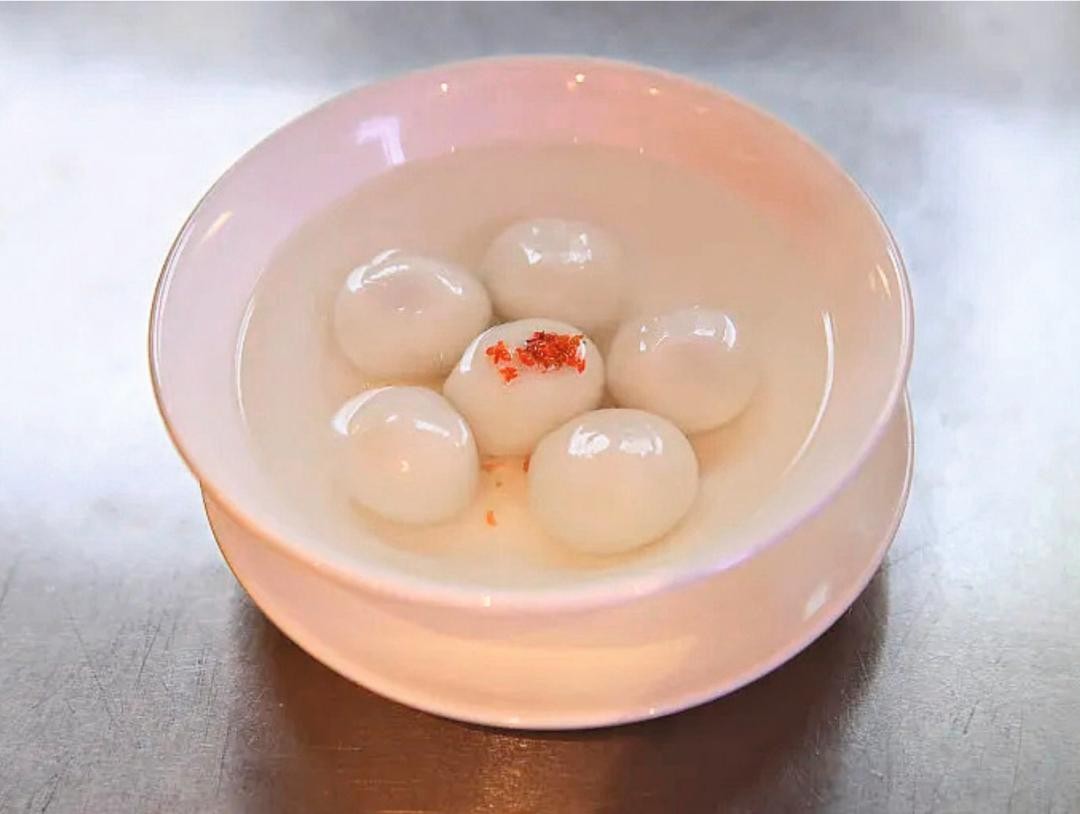 而在广东,还有一种被称作“四色汤圆”的传统美食。制作时,首先将绿豆、红豆、糖冬瓜和芋头分别煮熟或蒸熟,去皮后,分别加入白糖、芝麻和熟猪油等调味料,制作成四种风味各异的甜馅。接着,将这些馅料包入汤圆皮中,并为每颗汤圆标上记号。最后,将这些不同馅料的汤圆放入加了糖的水中煮熟,每一碗汤圆中会有不同的馅料,形成独特的搭配。其特点是口感软滑细腻,四种不同的味道各具风味,令人回味无穷。