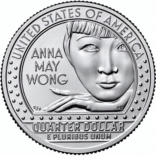 正好,最近在美国新发行的一款25美分的硬币上,首次出现了一个柳叶眉、齐刘海、细长的手指,乃典型的中国女人的面庞。这个中国女人,就是好莱坞的传奇华裔女演员,叫做黄柳霜。