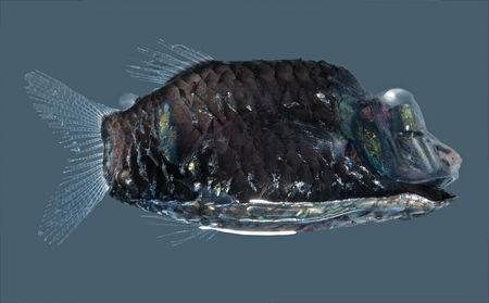 后肛鱼有着一对铜铃大的眼睛,这双眼睛有一个重要功能就是能让后肛鱼捕捉到深海处所有微小的光芒,因为后肛鱼会在200米~1000米有微弱亮光的水层游弋。在它捕食猎物或逃避天敌时,这对大眼睛自然给它带来不少好处。